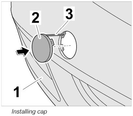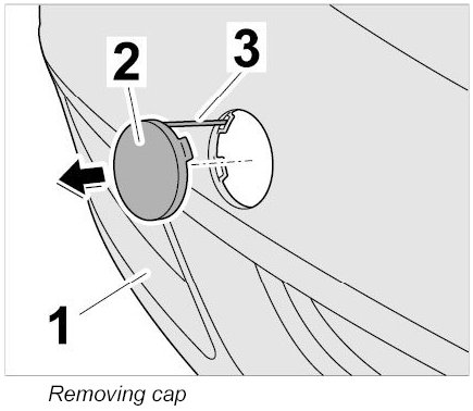 1. Carefully press the cap -2- out with a screwdriver. Pull out the securing cord -3- that joins the cap -2- and front apron -1- ( -arrow- ).