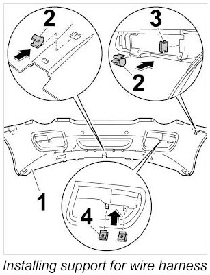2. Position support -2, 3- on the front apron -1- and press it in.