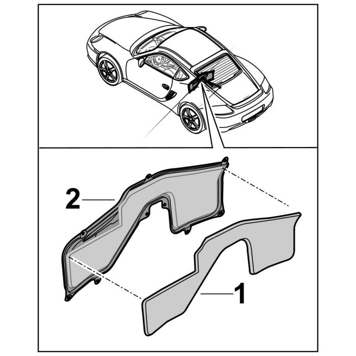 1. Pull off protective film and stick bulkhead insulation -1- on the inside in the rear wall lid -2-.