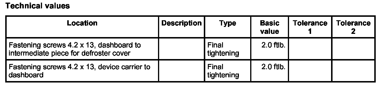 2. Screw in dashboard -2- near instrument cluster and centre air guide -3- with the fastening screws -1-.