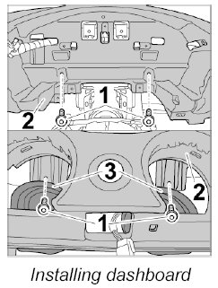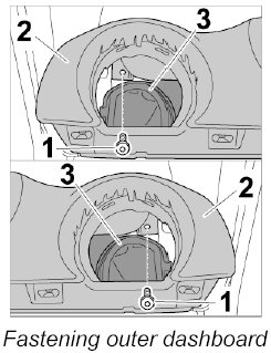 4. Screw in dashboard -2- near outer air guides -3- with the fastening screws -1-.