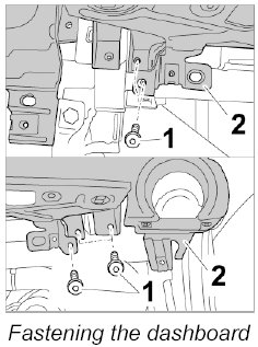 3. Screw in dashboard -2- at the lower front passenger side with the fastening screws -1-.