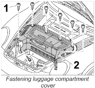 2. Screw down luggage compartment cover -2- using the fastening screws -1-.