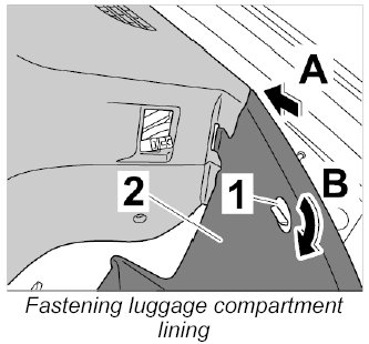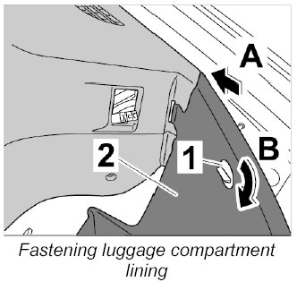 1. Unscrew plastic nut -1- ( -Arrow A- ) and loosen luggage-compartment lining on the left-hand side -2- ( -Arrow B- ).
