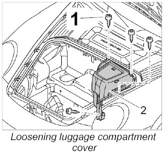 2. Unscrew fastening screws -1- from the luggage compartment cover -2-