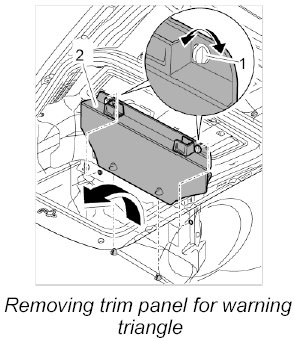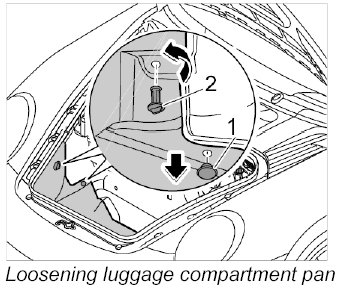 5. Lift up the luggage compartment pan -1- and remove it.