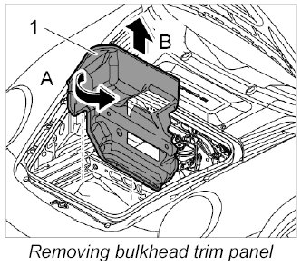 5. Loosen bulkhead trim panel -1- in -direction of arrow A- and lift it up and off -Arrow B-.