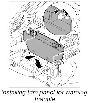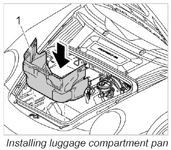Installing front luggage compartment trim panel (luggage compartment pan)