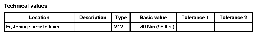 After loosening the fastening screw -1-, it must be replaced or secured fairly tightly with Loctite 243. M12: 80 Nm (59 ftlb.).