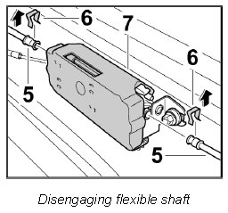 2. Unclip clip -6- from the flexible shaft -5- and remove the shaft from the drive motor -7-.