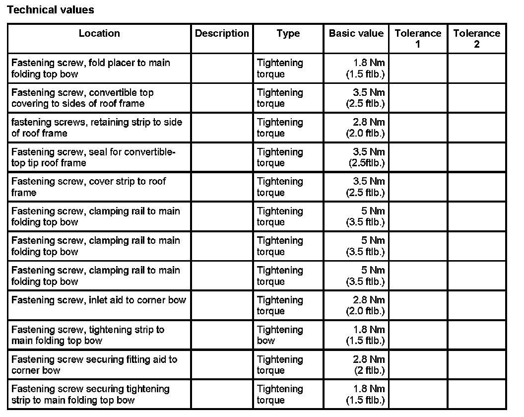 - Always replace the spare parts contained in the "convertible-top covering" scope of parts.
