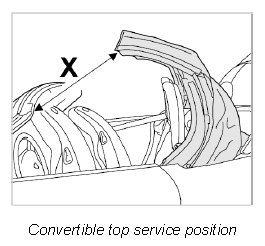2. Carefully move convertible top forward by hand until the convertible top frame touches the windscreen frame.
