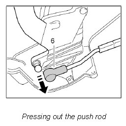 1. Press ball socket of push rod -6- off the ball head of the main folding top bow.