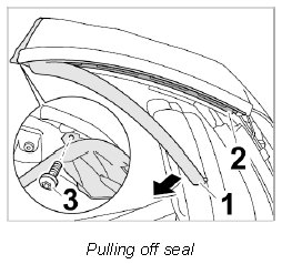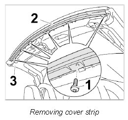3. Unscrew fastening screws -1- from the retaining strip -2-. Pull off seal for convertible-top tip -3-.