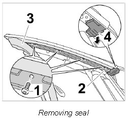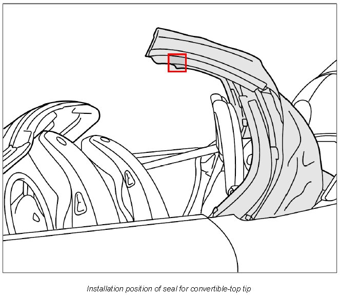 2. Remove seal for convertible-top compartment lid. Refer to Removing and installing seal for lid.