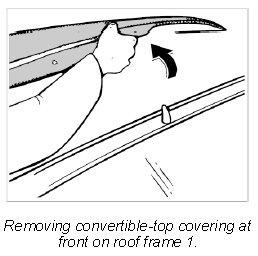 2. Loosen convertible-top covering at front on roof frame and lay it down to the rear.