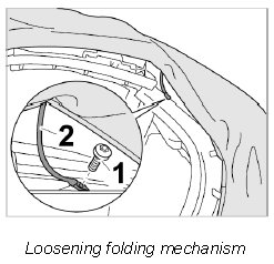 1. Unscrew fastening screws -1- on the folding mechanism -2- at the left and right.