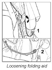 3. Pull folding aid -1- out of the hood support -arrow-.