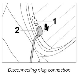 1. Carefully disconnect plug connection -2- on left and right from the connector -1- at the rear window.