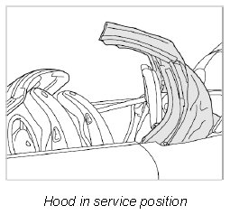 1. Move hood to service position.