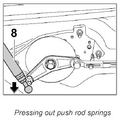 2. Press left and right push rod springs -8- out of the ball head on the drive lever.