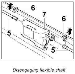 4. Unclip clip -6- on the flexible shaft -5- and remove the shaft from the drive motor -7-.