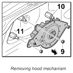 1. Unscrew fastening nuts -9-. Remove hood mechanism -10- from the studs -11-.