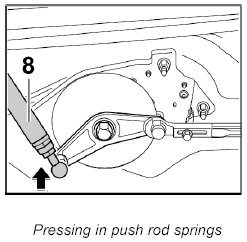 3. Press left and right push rod springs -8- into the ball head on the drive lever.