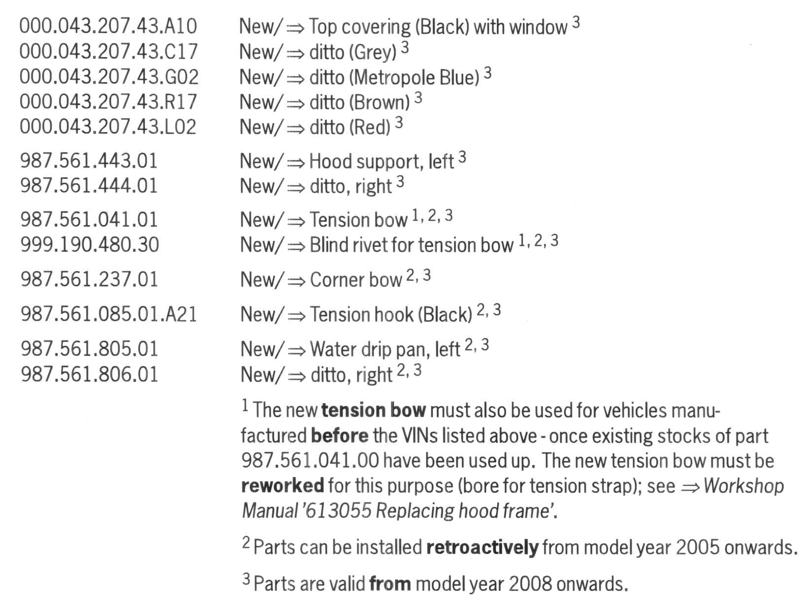 - Information added to footnote 1 (reworking new tension bows; -->Workshop Manual, Chapter'613055').