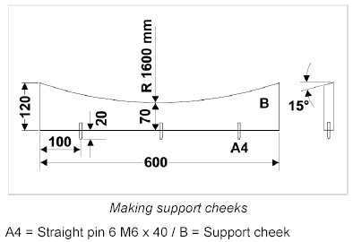 Make support cheeks -B- with basic material Multiplex plate 600 x 120 mm, 25 mm thick.