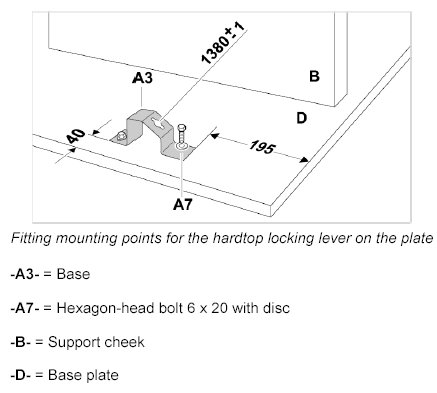 Fitting mounting points for the hardtop locking lever on the plate