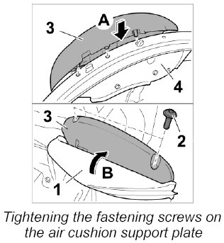 4. Fasten the air cushion support plate -3- with the two fastening screws -2-.
