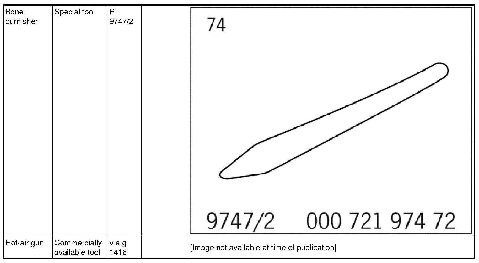 1. If creases have formed, partially heat the affected areas of the cover with the hot-air gun and smooth out the cover using the special tool.