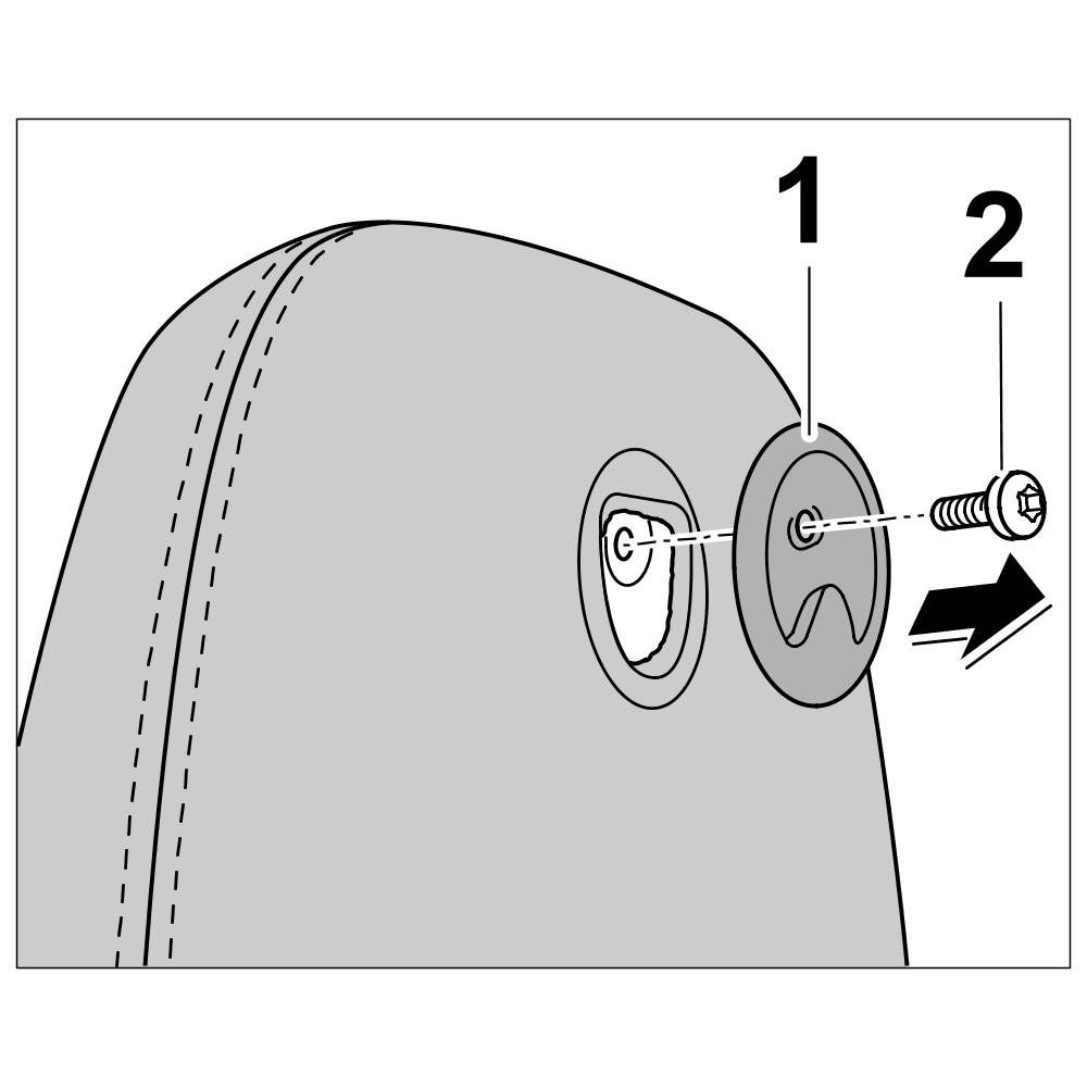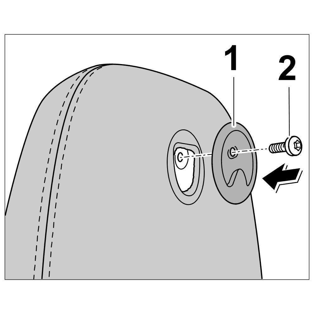 12. Position collar -2- on the backrest cover -1- and press in until it clicks into place.