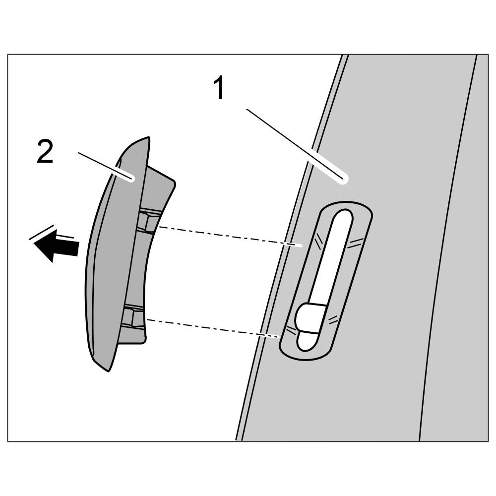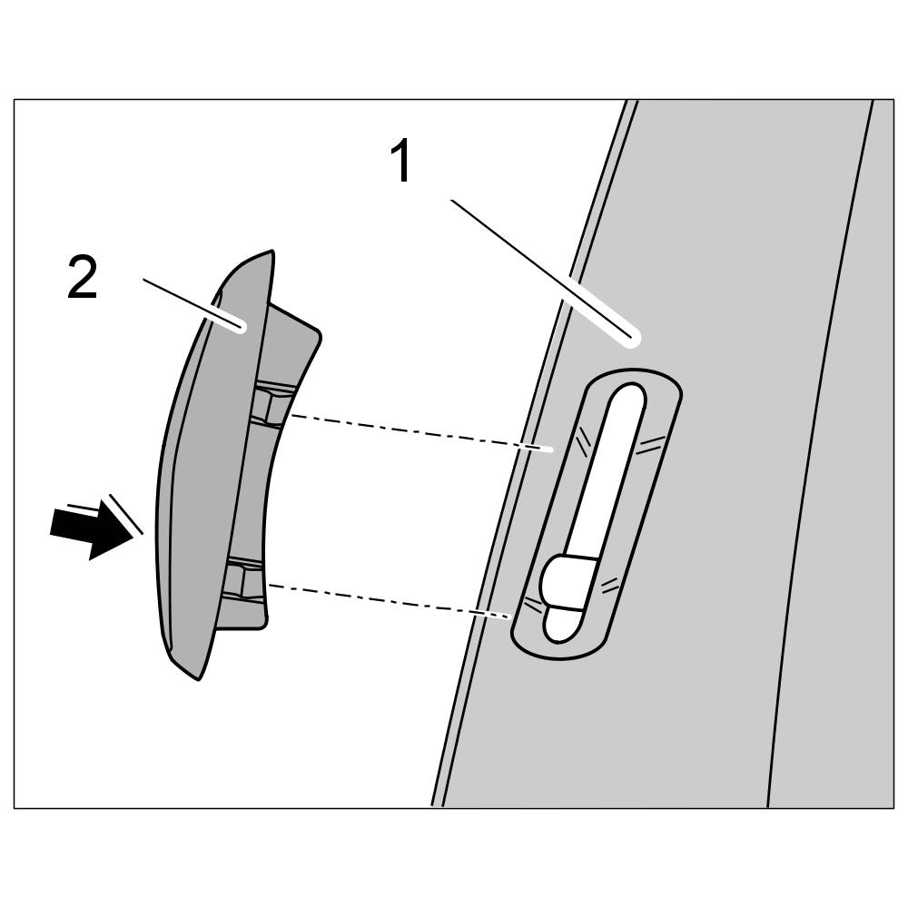 3. Press plastic strip -2- on cover for backrest -1- into the fixing clips -3-.