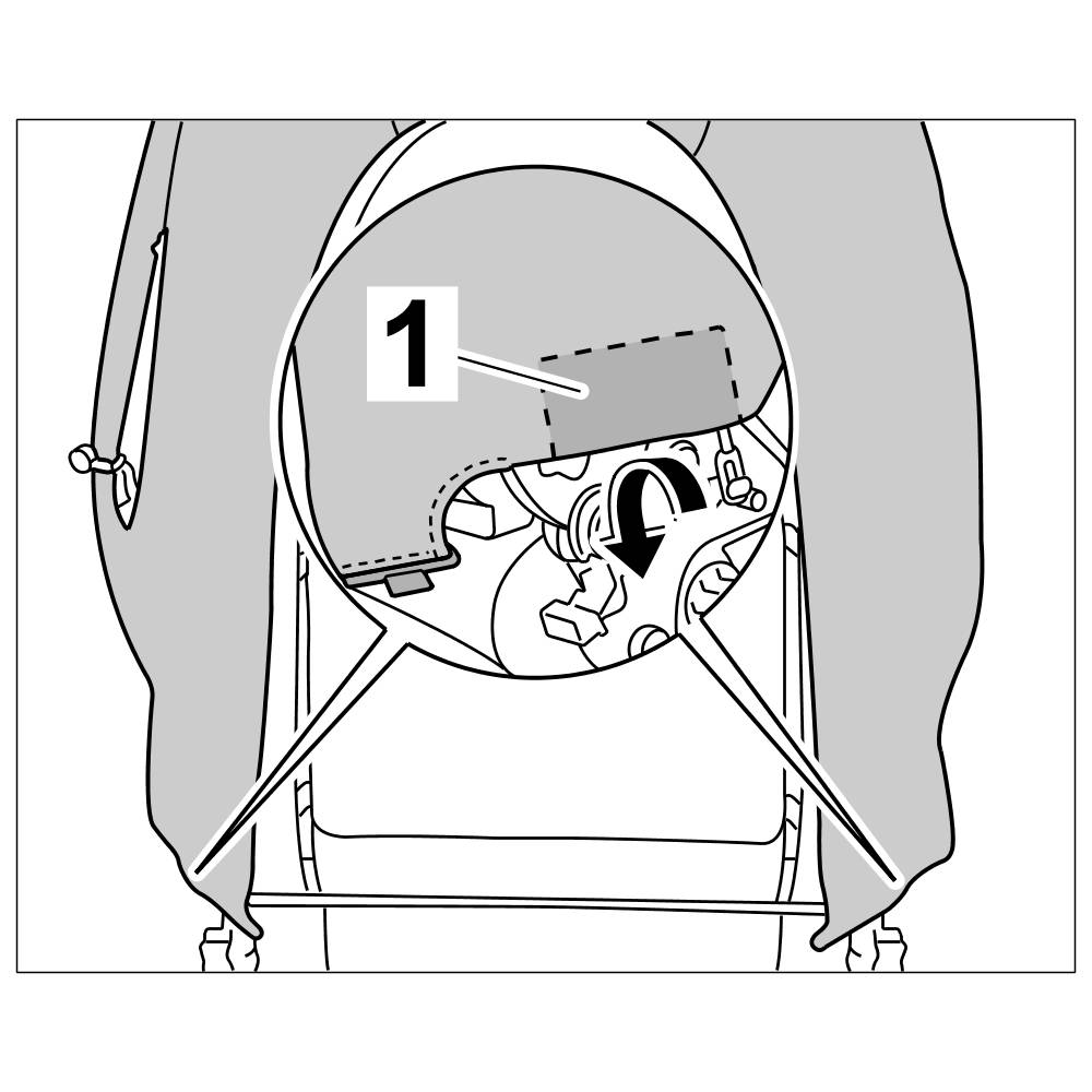 7. Engage connection of backrest cover -1- at the bottom into the cushion carrier -Arrows B-.