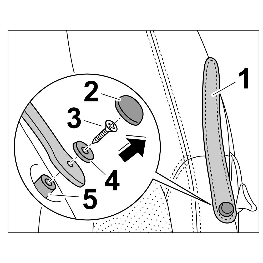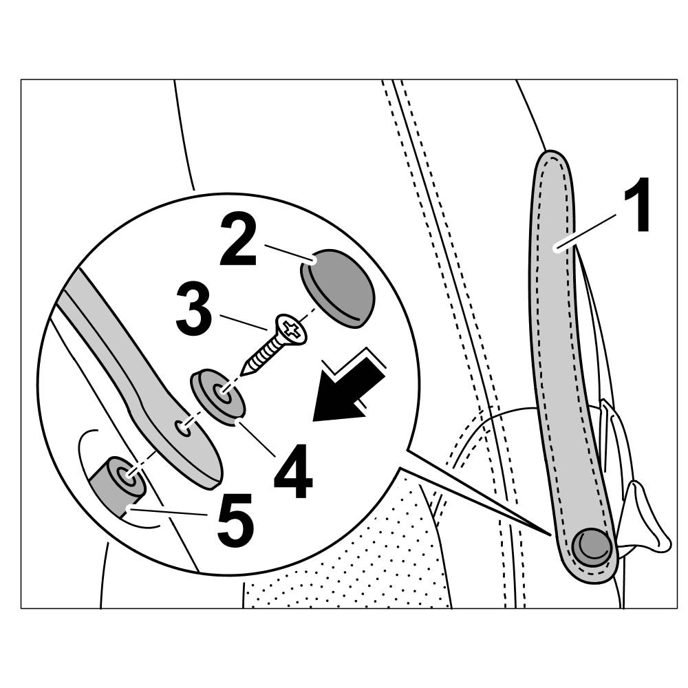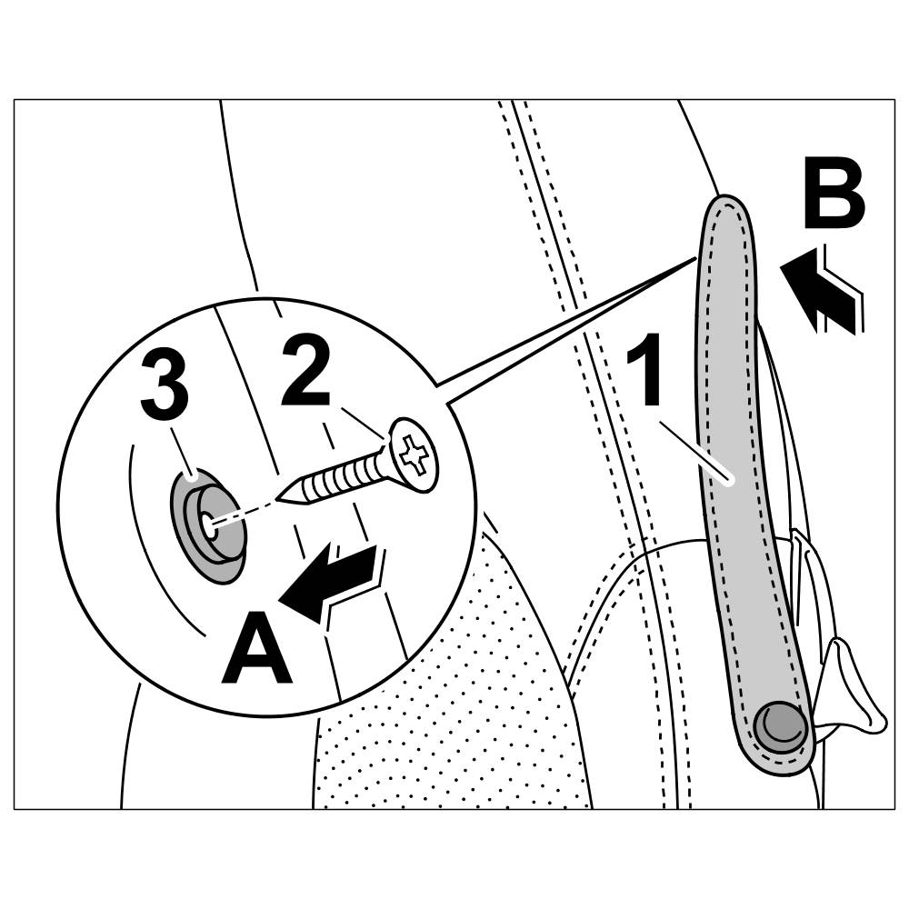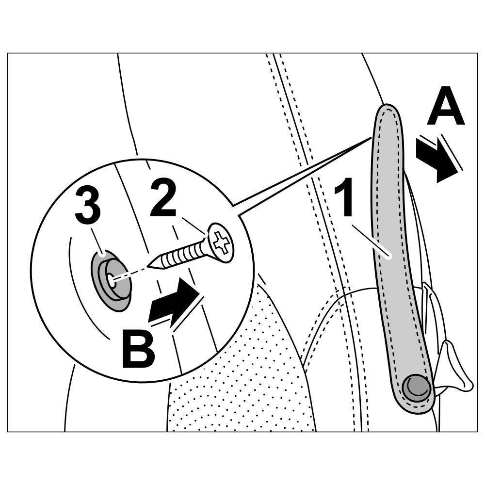 4. Position push button -3- with the aid of the marking on the backrest cover -Arrow A- and screw down with the fastening screw -2-.