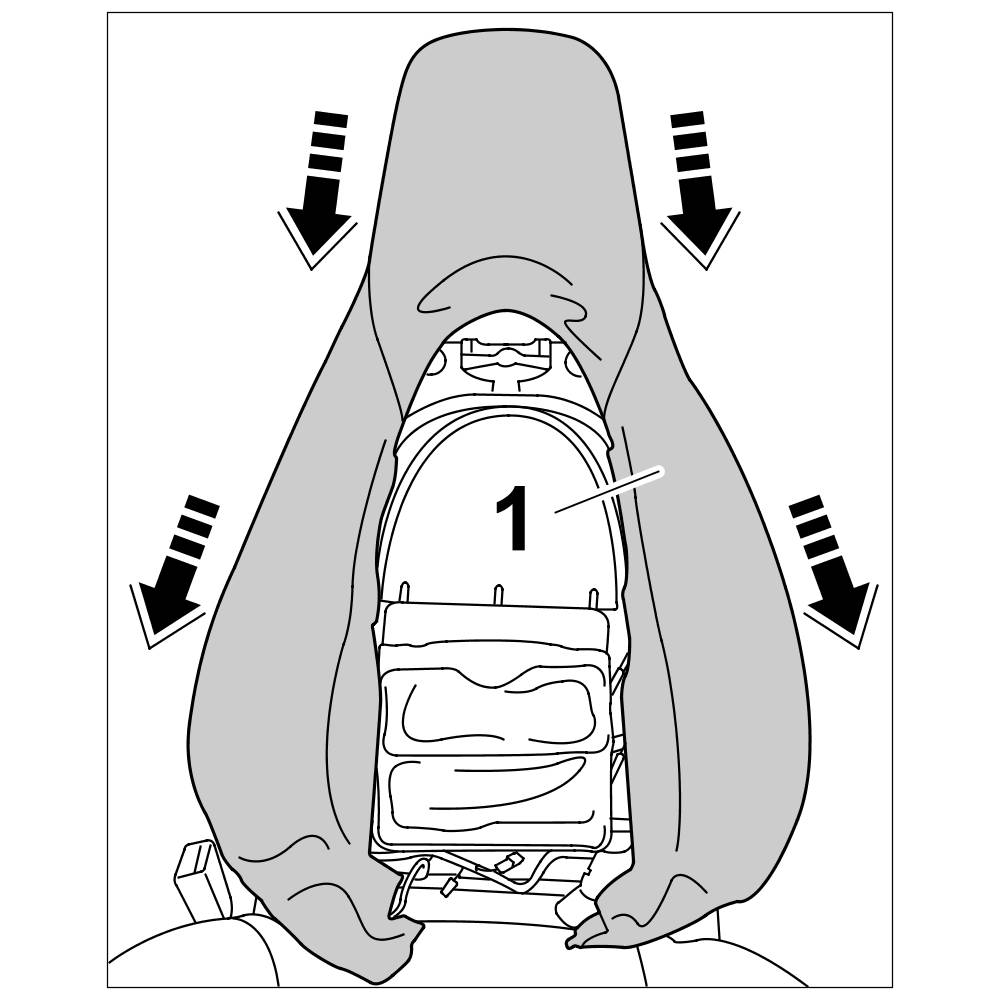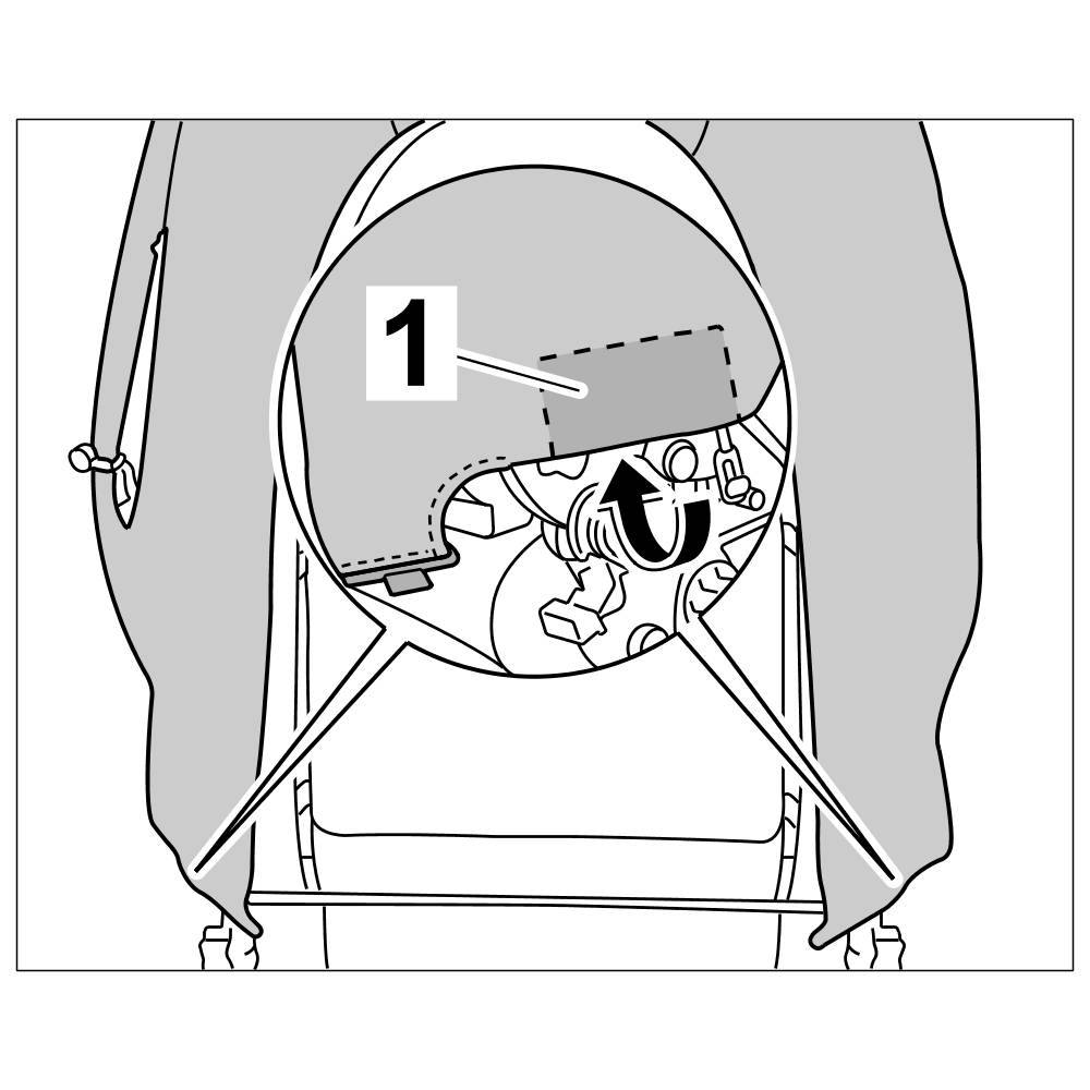 5. Fold cover piping -1- at the sides in direction of arrow.