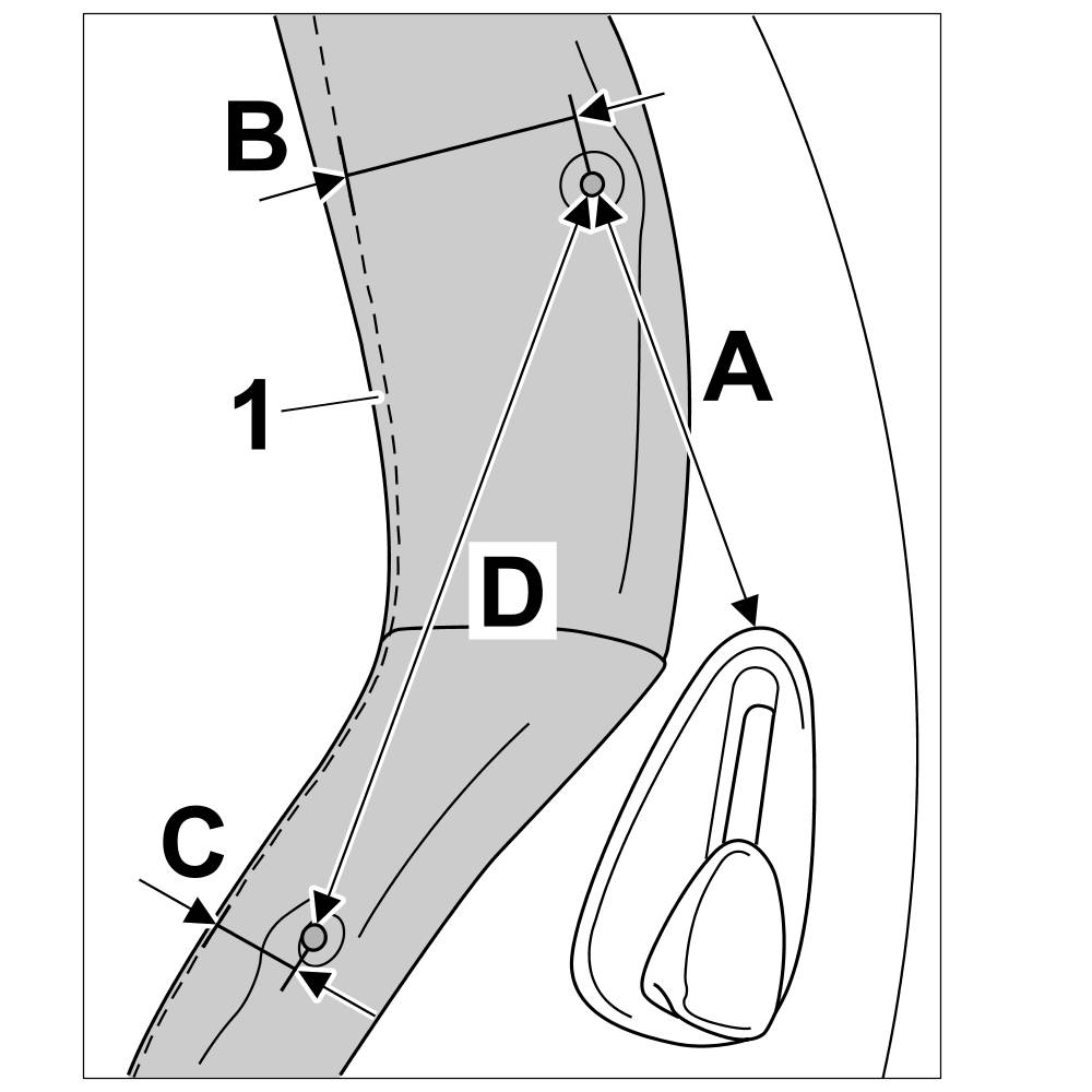 If the backrest cover -1- has been replaced after repairs, the seat-belt guide mounting points must be measured again and marked.