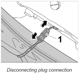 3. Disconnect electric plug connection for backrest seat heating -1-.