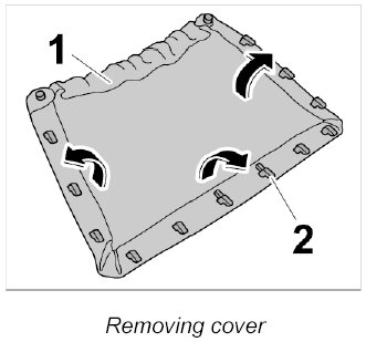 Disengage cover for backrest pocket -1- out of the plastic frame -2- all the way round.