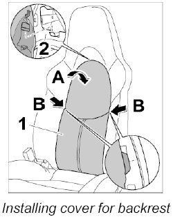 3. Press in cover for backrest -1- in the middle -arrows B- until the locking tabs engage -inset-.