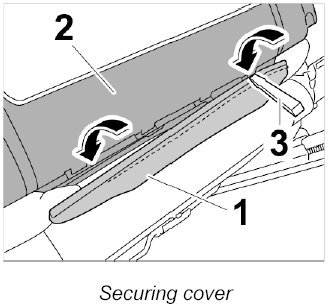 Engage cover for backrest pocket -1- in the plastic frame -2- all the way round.
