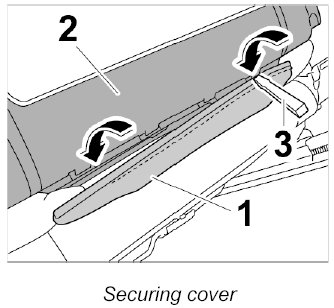 4. Press cover for backrest -1- into the backrest shell -2- at the bottom using a plastic wedge -3-.