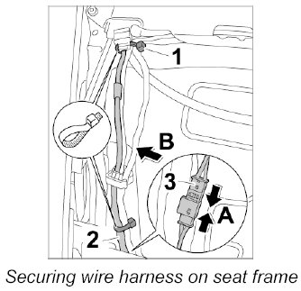 2. Connect electric plug connection -3- for backrest seat heating -arrows A-.