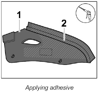 1. Apply adhesive -2- to the marked area of the padding -1-.