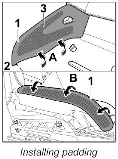 4. Press on Velcro fasteners -1- on the back of the padding -2- ( -Figure B- ).