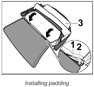 1. Release Velcro fasteners -1- on the back of the padding -2- all the way around ( -Figure A- ).