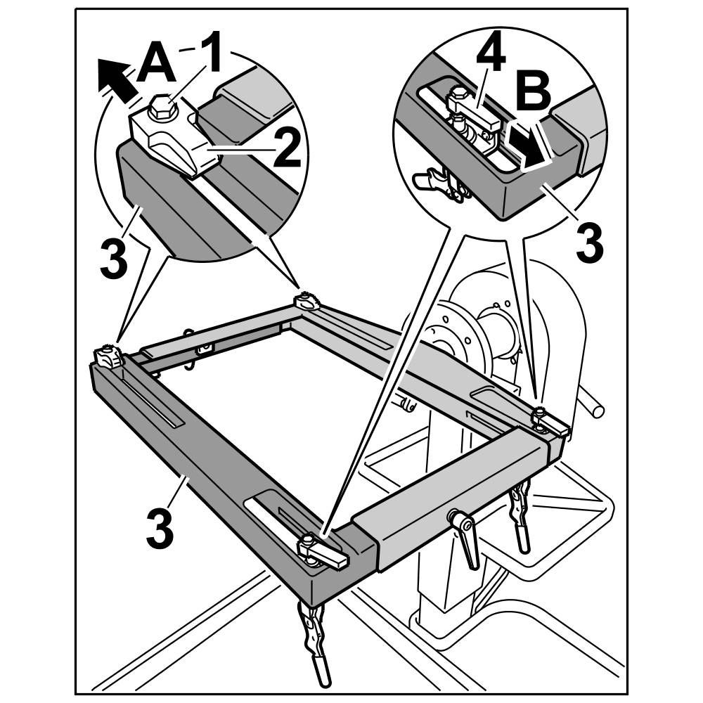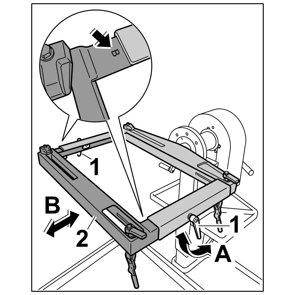 2.2. Adjust seat mounting -2- to the relevant width ( -marking B- ) of the seat frame -arrow B-.