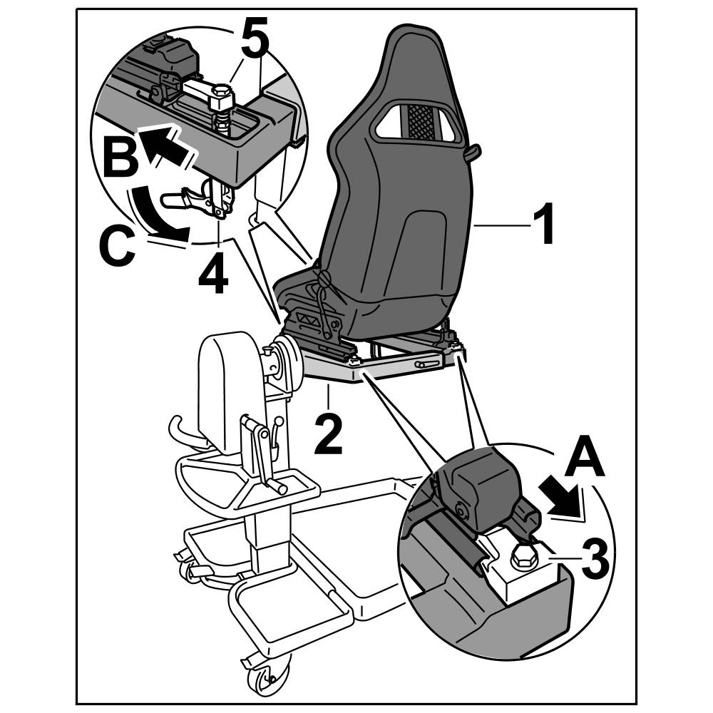3.3. Slide locking lever -4- into the seat frame -arrow B- and lock it -arrow C-.